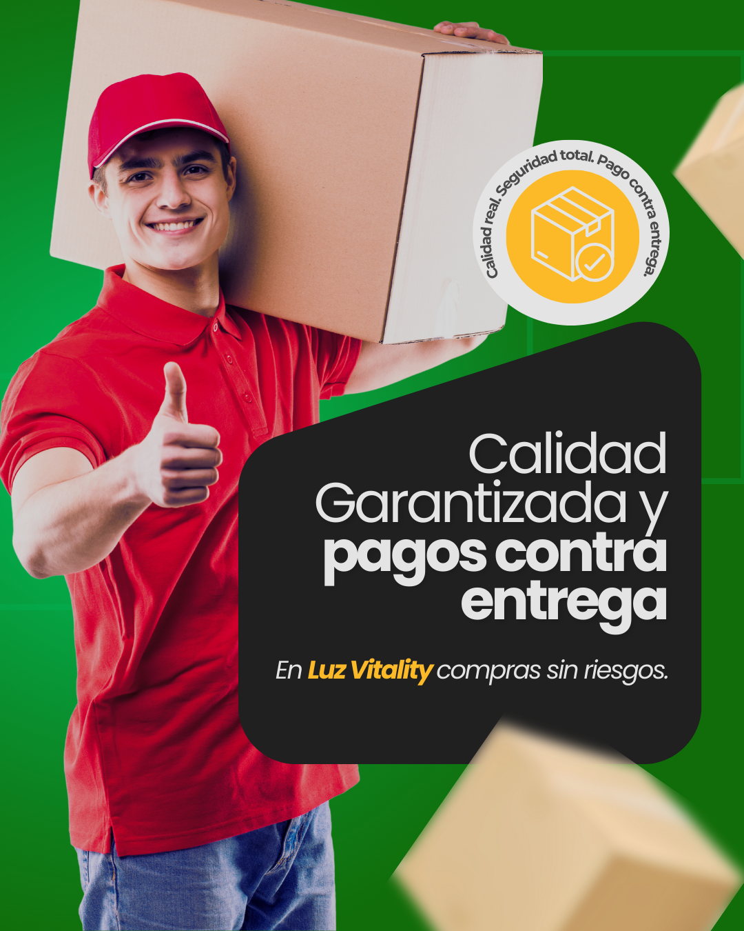 Paga cuando recibas tu pedido en la puerta de tu casa. Compra con mayor tranquilidad y seguridad.