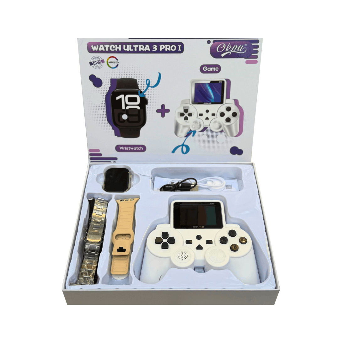 El Combo Smart Gaming Wash Ultra 3 Pro 1 de Luz Vitality es la combinación perfecta entre diversión, tecnología y estilo en un solo paquete. Diseñado para todas las edades, este set incluye un videojuego portátil con 520 juegos clásicos integrados y un smartwatch multifuncional que complementa tu día a día.